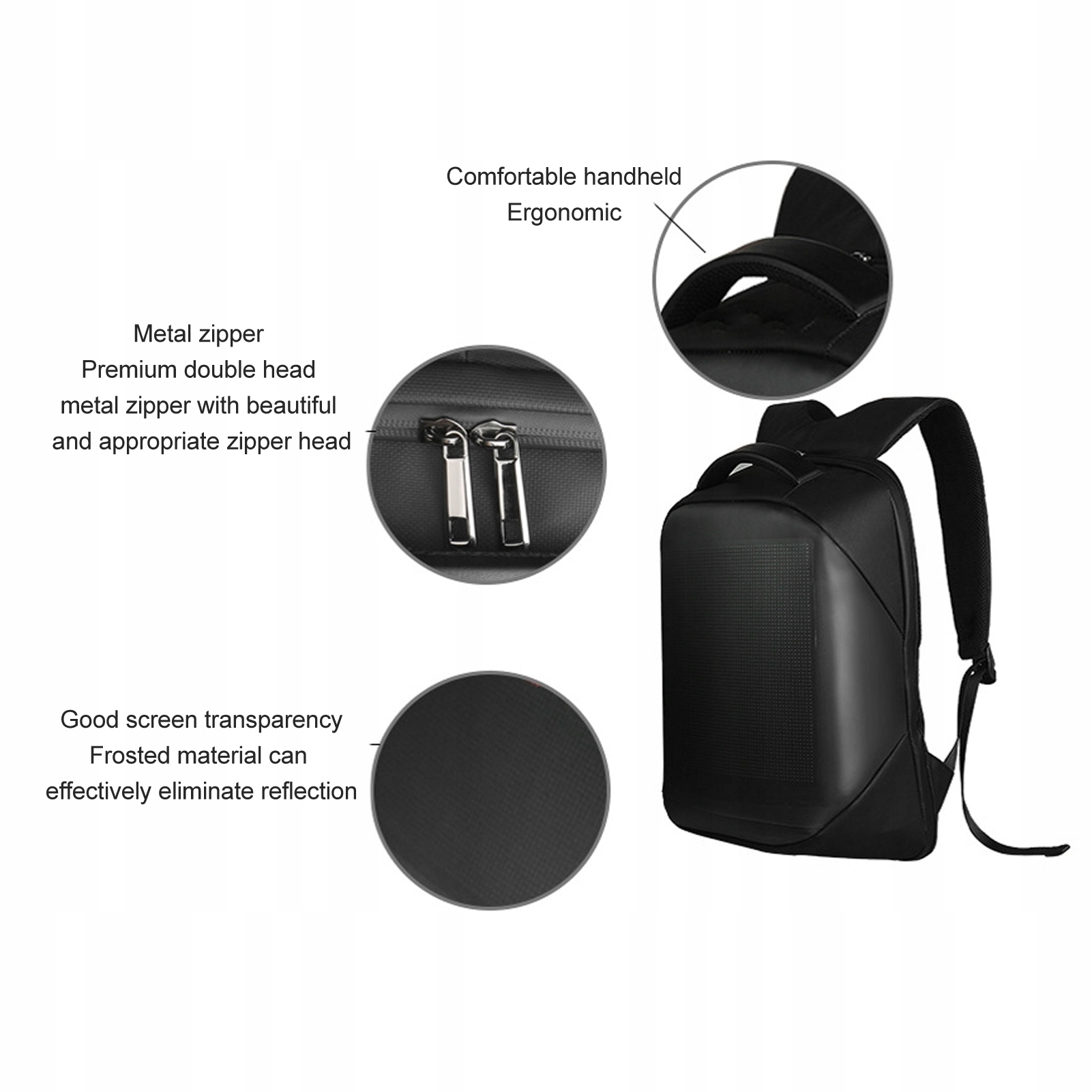 Функция: 1. [Полный -колорный светодиодный дисплей] Этот рюкзак оснащен полнозапированным светодиодным экраном, который можно запрограммировать с помощью мобильного приложения путем подключения Bluetooth, что облегчает корректировку.