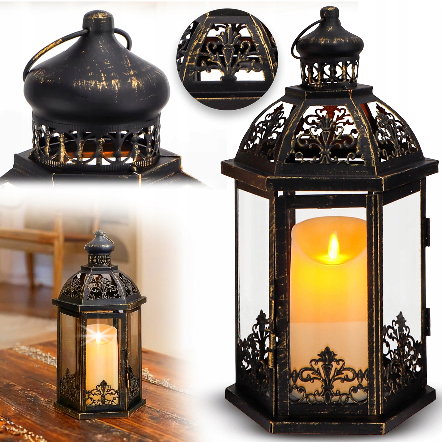 Фонарь Heckermann — изделие, которое сразу бросается в глаза. Его дизайн из черного золота с украшениями делает его похожим на сувенир из старины — стильный, вневременной и характерный.
