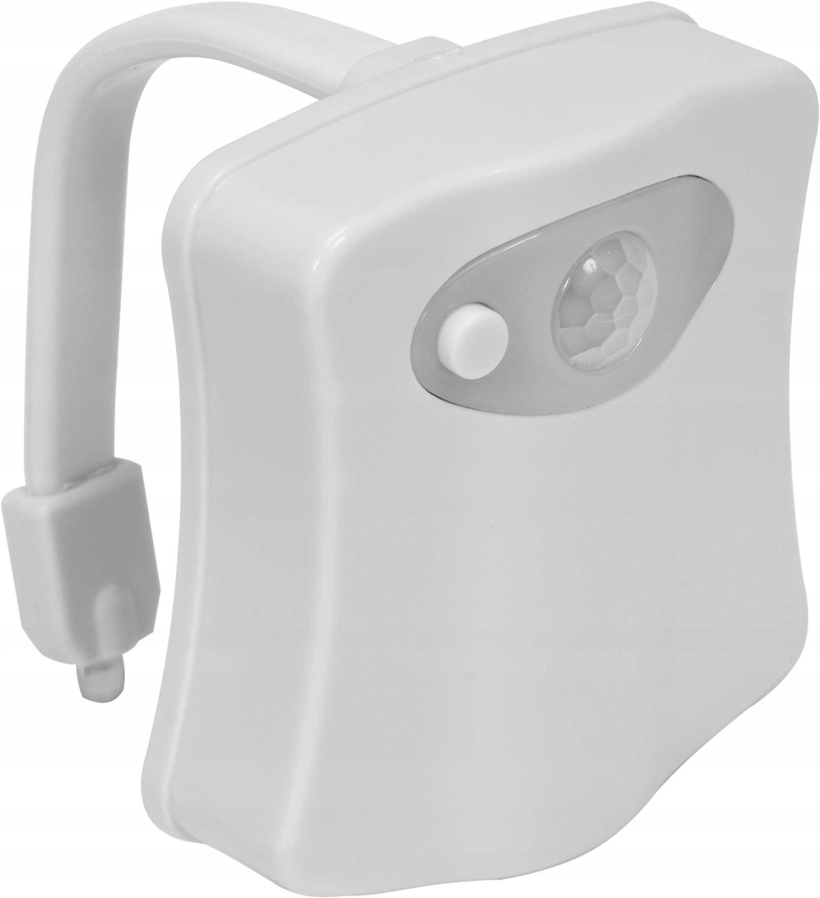 Он имеет датчик движения, что очень помогает и в то же время экономит заряд батареи (продлевает время работы устройства). Лампа работает только тогда, когда рядом находится человек. Он оснащен эффективным диодом, излучающим яркие и насыщенные цвета. С помощью небольшой кнопки на внешней стороне лампы мы можем изменить режим светодиодного освещения. — режим смешивания (8 разных цветов, плавно меняющихся) или только 1 цвет. Цвет корпуса белый, а это значит, что светильник не очень заметен на сантехническом приборе и поэтому не выделяется на фоне унитаза. р>