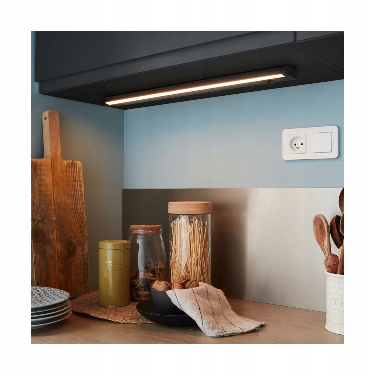 Светильник светодиодный «Пория» длиной 60 см с прямым подключением или вилкой отлично подойдет на стену или под кухонные шкафы для освещения, например, рабочей поверхности или варочной поверхности. С помощью переключателя можно изменить цвет света с теплого на холодный белый. Рама регулируется. Также можно соединить несколько светильников вместе в зависимости от длины столешницы. Матовый черный цвет соответствует металлическому корпусу Delinia iD.