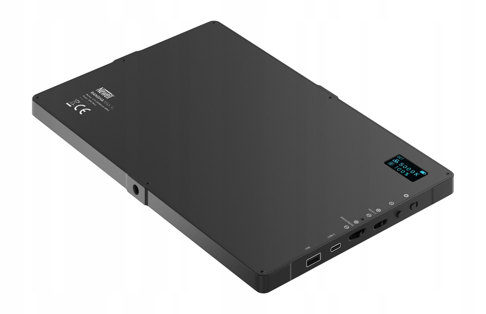 Newell RGB-W Rangha Max XL — компактная светодиодная панель впечатляющих размеров 28 на 18 см, которая оправдает ожидания как фотографов, так и создателей видео. Устройство предлагает регулировку цветовой температуры (2500–9900 К), а также возможность изменения цвета света в цветовом пространстве HSI. Интуитивное управление фонарем обеспечивается эргономичными ручками и кнопками, а также OLED-экраном с подсветкой. Три резьбы 1/4" и входящий в комплект переходник для холодного башмака — решения, позволяющие подключить лампу к штативу или фото-видео аксессуарам. Порт USB-C позволяет быстро пополнить запас энергии встроенного аккумулятора (23 000 А). мАч). Разъем USB-A позволяет заряжать другие устройства прямо от фонаря. Также производитель не забыл о 21 спецэффекте (включая стробоскоп, свечу или свет полицейской машины).