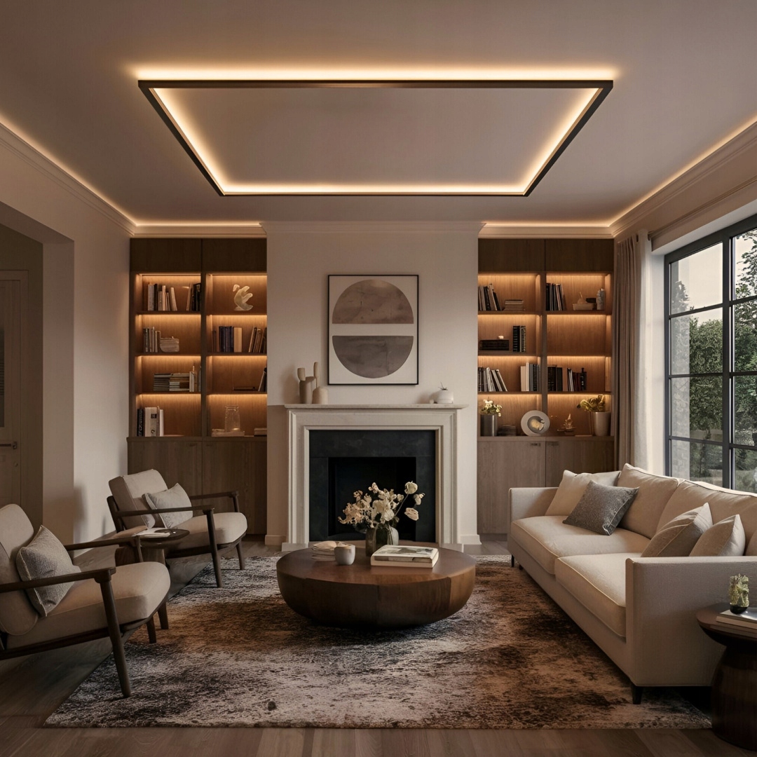 Добавьте современный акцент в свою гостиную, подчеркивая выбранные элементы декора, такие как полки, картины или шкафы. Создайте теплую и дружелюбную атмосферу для расслабления и общественных собраний