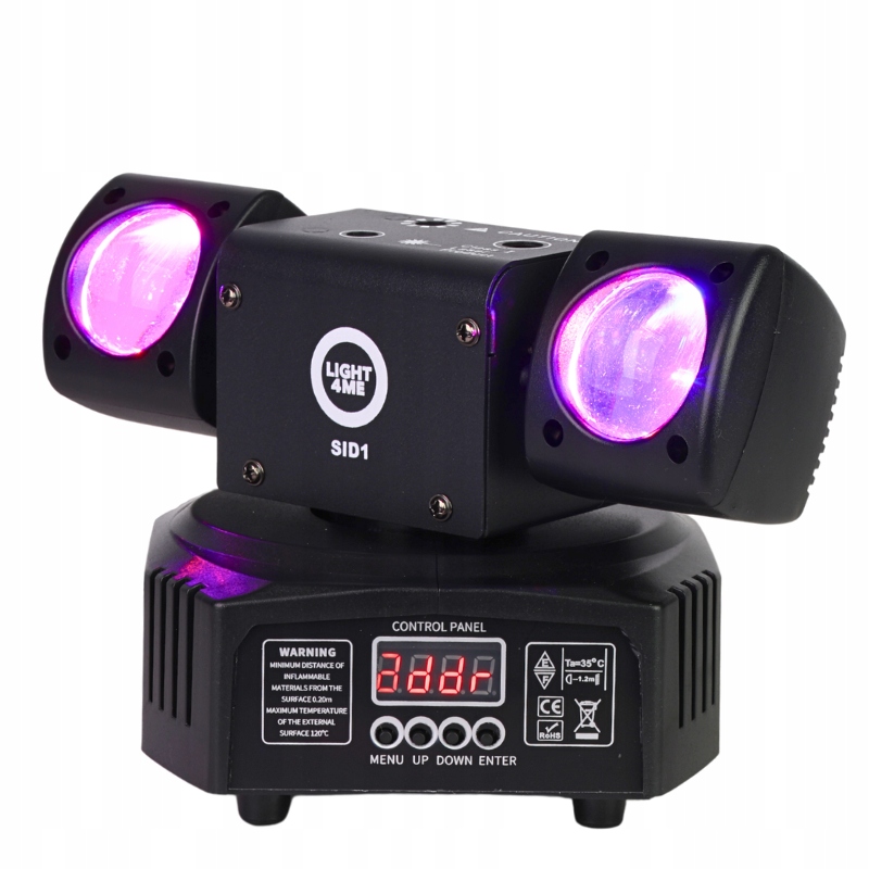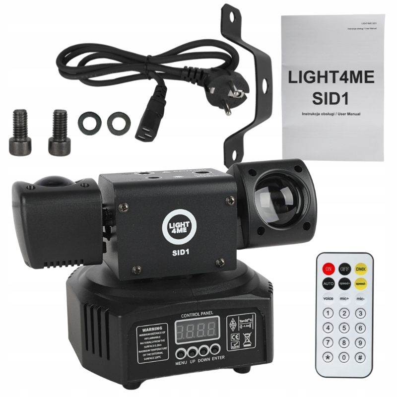 Благодаря полным диммеру , основной стробоп и регулируемым эффектам скорости, 540 °/180 ° й диапазон движения MAN/TILT, 8 программ Auto Mode и 4 программы звукового режима, Light4me SID1 ✅ . Возможность отмены ориентации и отключения дисплея обеспечить еще большую гибкость в расположении пространства ✔ . Панель управления со светодиодным дисплеем и 4 кнопками облегчает быстро и безрассудную настройку параметров , даже в динамически изменяющихся условиях. Возможность управления с использованием инфракрасной беспроводной пульты
