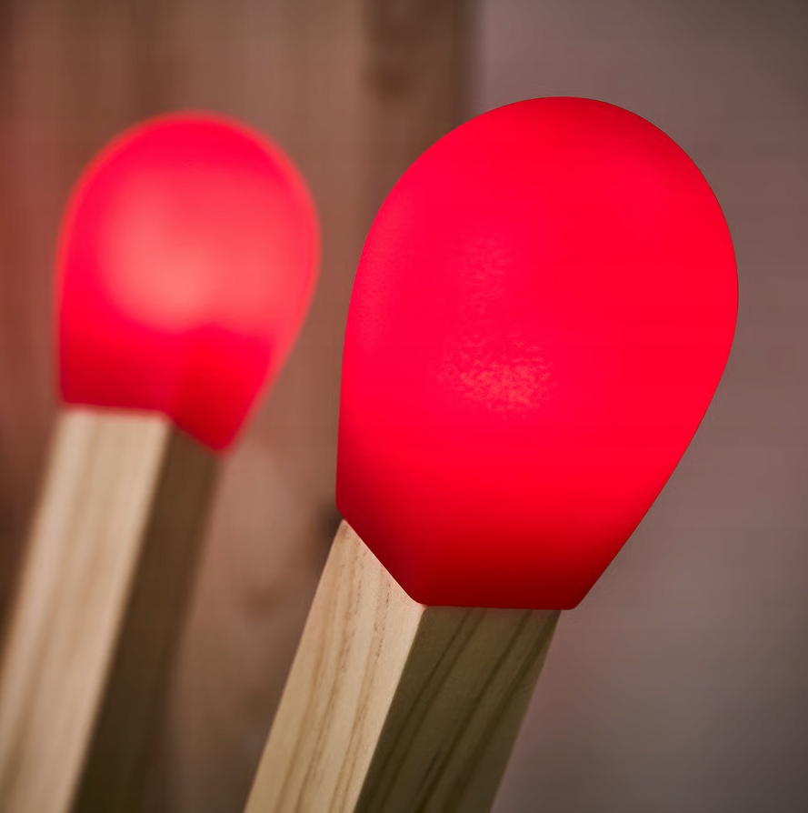 Забавная форма, вдохновленная спичками, непременно привлечет внимание и вызовет улыбку.