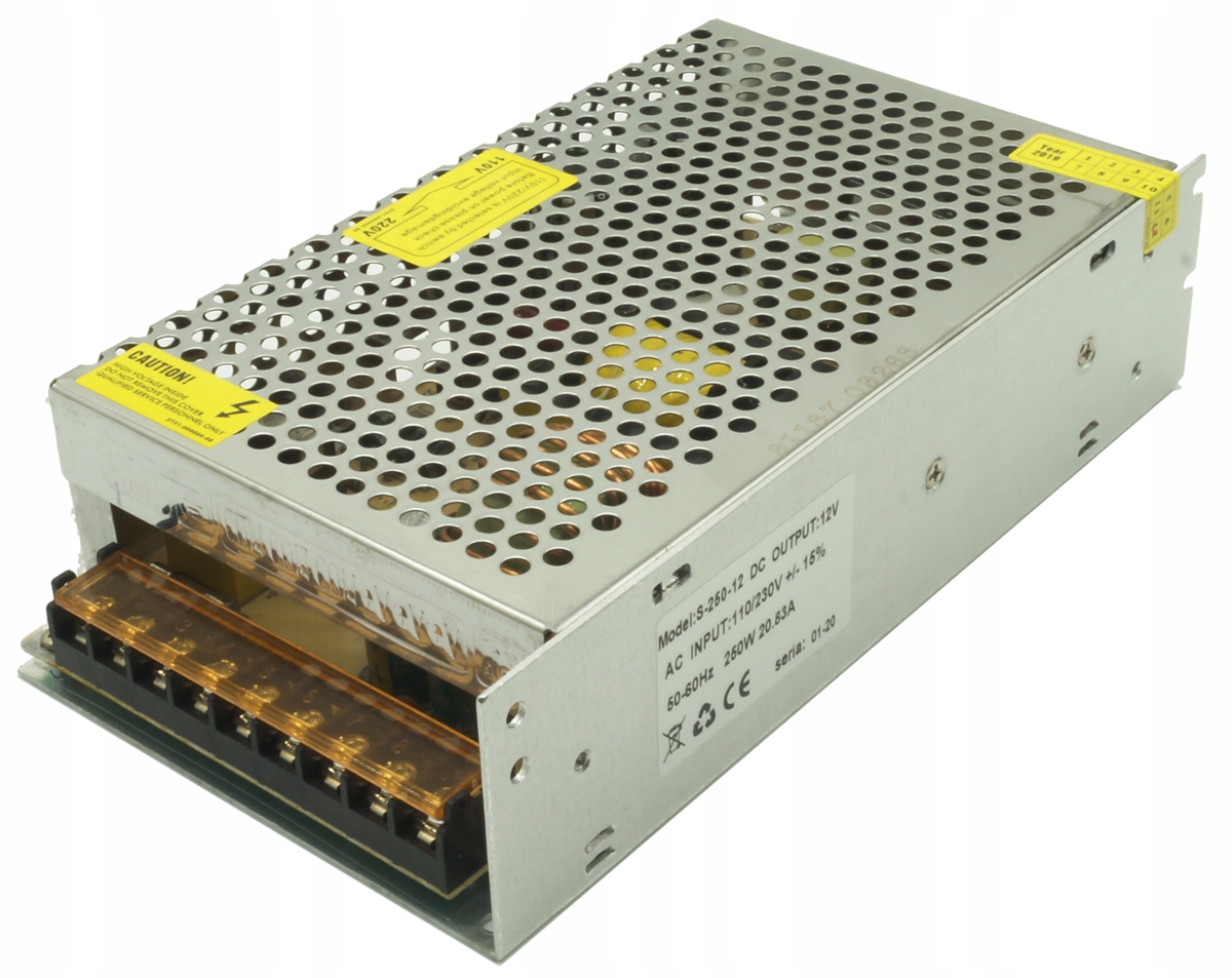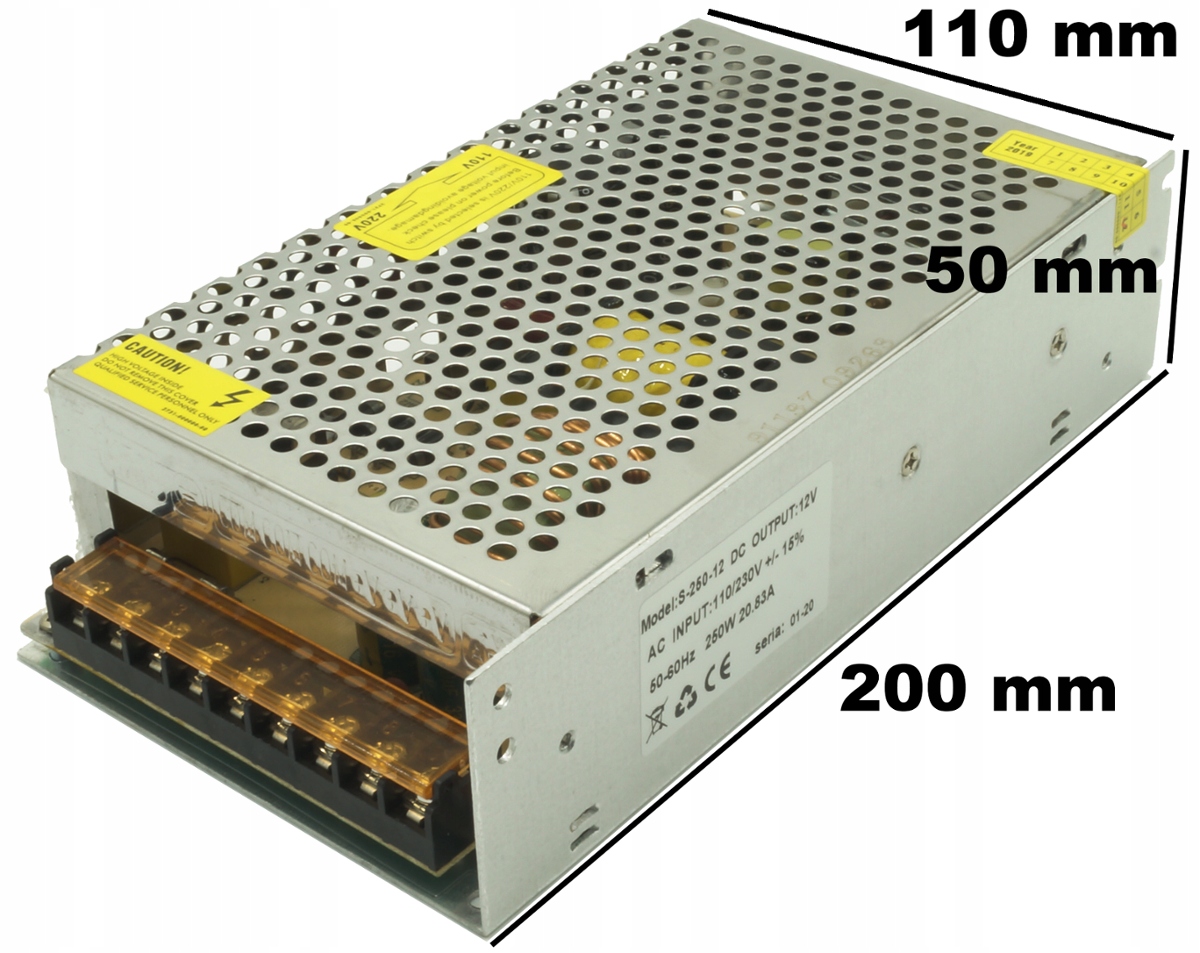 Внешние размеры: 200 x 110 x 50 мм Сертификаты: CE, ROHS Pield для использования в помещении. Продукт был изготовлен из качественных компонентов , которые были размещены в корпусе сплошного листового металла . Питание предназначено для снабжения светодиодного освещения с напряжением 12 В, например, Светодиодные ленты, интегрированные светильники и лампочки. Конвертер PFC оптимизирует реактивное энергопотребление из сети . Использование трансформатора изолирует нагрузку от энергосистемы гальванически, что имеет основополагающее значение для обеспечения безопасности. Охлаждение осуществляется через свободный воздушный поток через перфорированное корпус . Модульная конструкция обеспечивает простую и удобную установку на вертикальные и горизонтальные поверхности с двумя винтами с максимумом. Диаметр 4 мм. Выходное напряжение 12 В безопасно для людей.