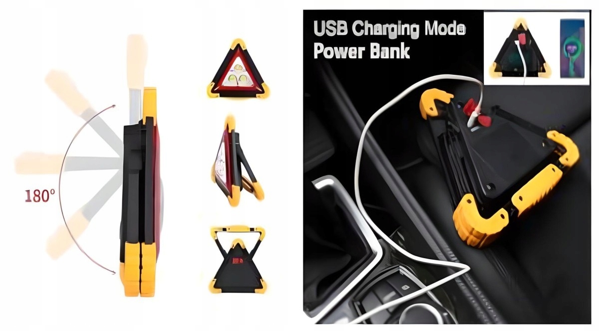 Светодиодный предупреждающий треугольник с фонариком и функцией PowerBank