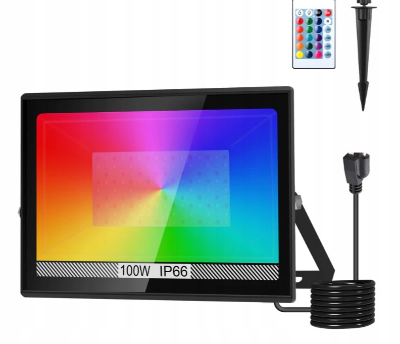 Светодиодный прожектор RGB 100 Вт с дистанционным управлением — 16 цветов и 4 режима