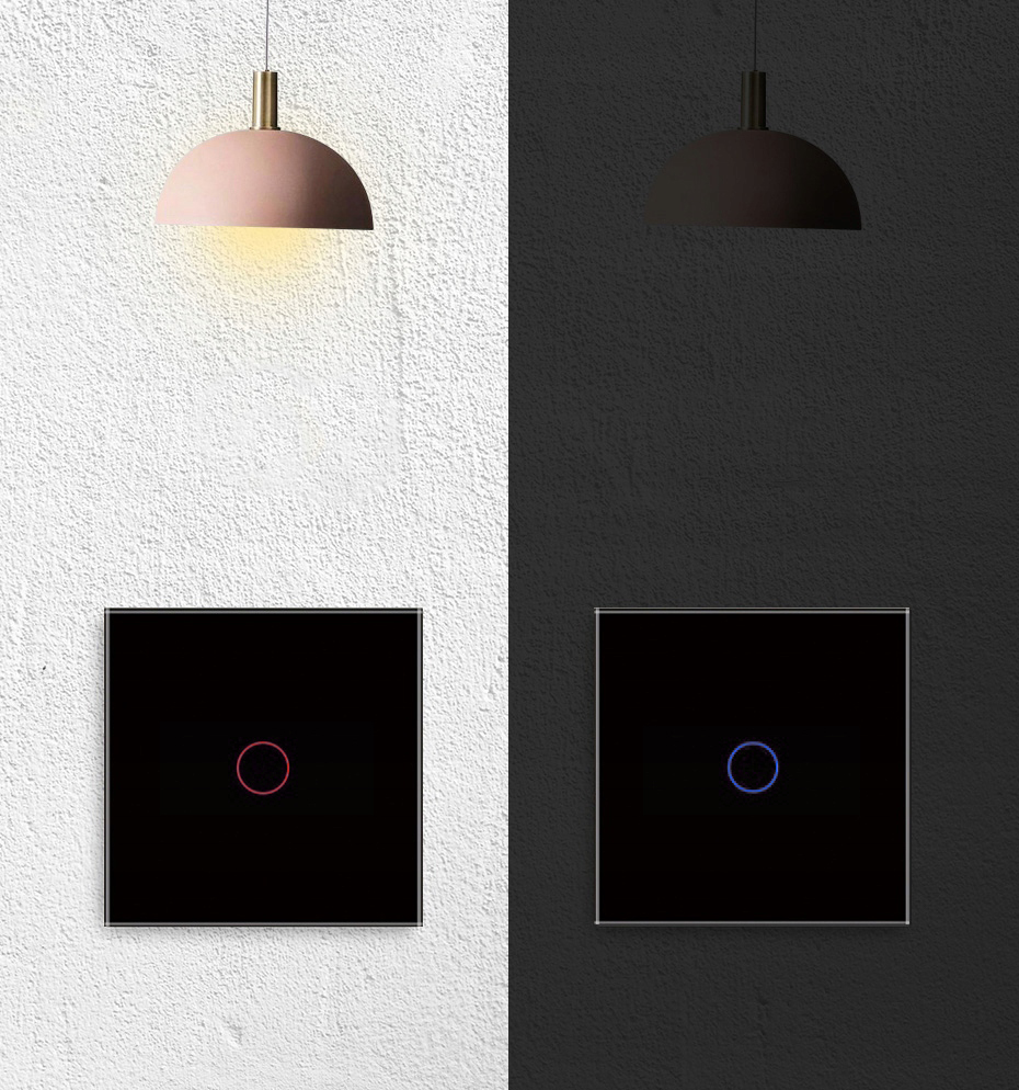 ✔️ Стеклянная панель имеет красочную подсветку сенсорных кнопок. Когда свет включен, кнопка светится слегка красным, что помогает найти переключатель в темноте, когда свет выключен горит синим. p>