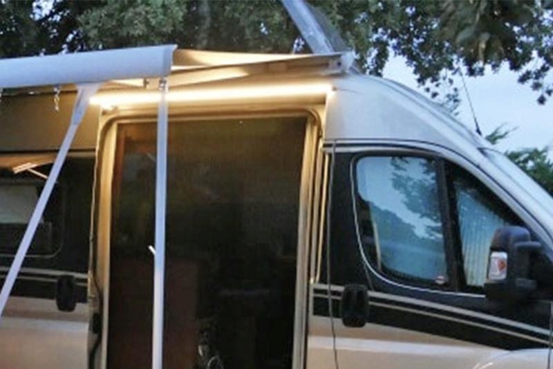 У входа в ваш автофургон нет света? Выберите входной светильник, который будет освещать весь подъезд. Эта лампа не только излучает свет, но также может использоваться в качестве водосточного желоба. Это также предотвращает попадание дождя через раздвижную дверь.
