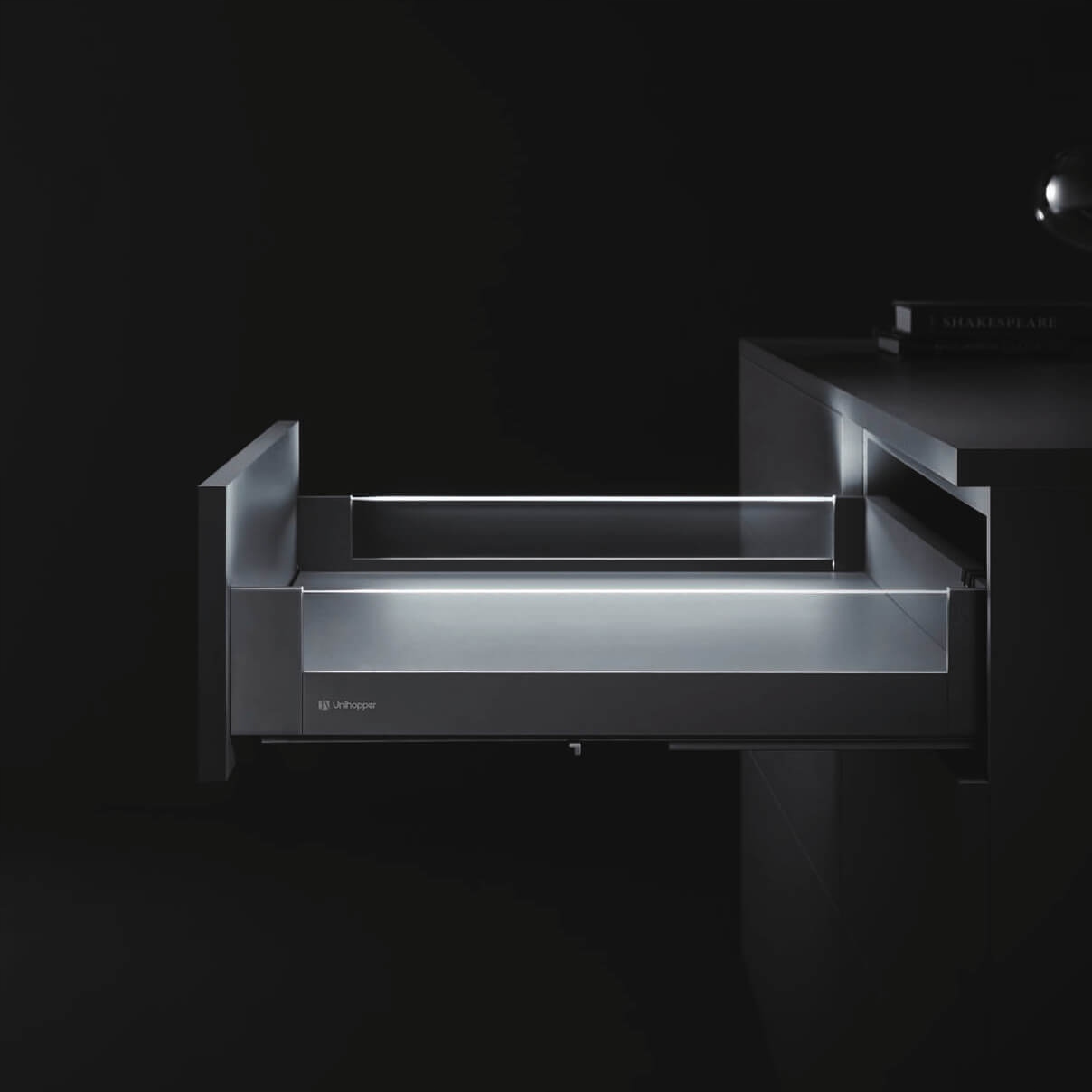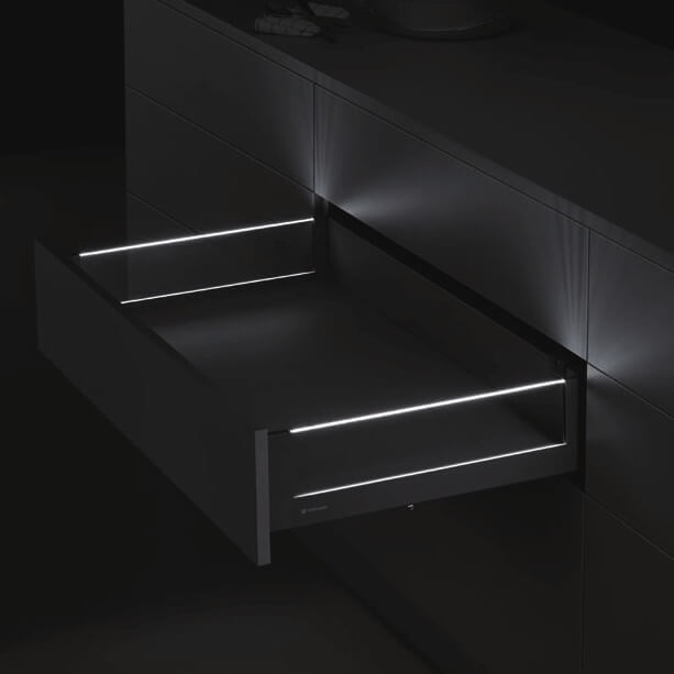Новая система ящиков с тонкими бокам также обеспечивает большее пространство внутри ящика. Благодаря этому вы можете хранить больше предметов в порядке и легко найти необходимые вещи. Кроме того, система регулировки в каждой плоскости была улучшена, что позволило вам легко адаптировать ящик к индивидуальным предпочтениям пользователя. Установка ящика проста, и не требует фрезерования , что делает процесс установки быстрым и удобным.