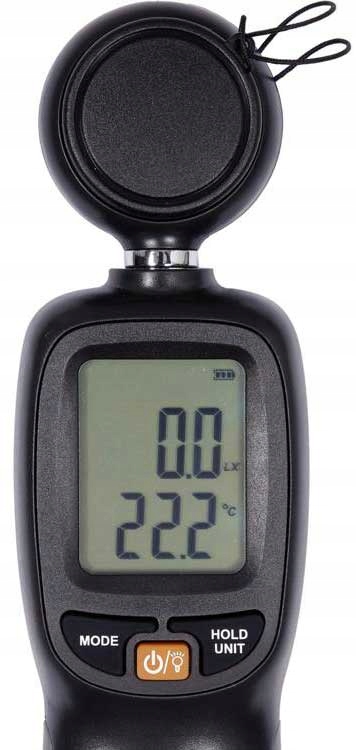 Измеритель освещенности (люксметр) — прибор для регистрации уровня яркости освещения. Широкий диапазон измерений позволит измерять яркость как одиночного светодиода, так и отражателей промышленного назначения. Чаще всего используется для измерения освещения в офисных помещениях, школах и на заводах. Помимо интенсивности освещения, измеритель позволяет контролировать температуру окружающей среды.