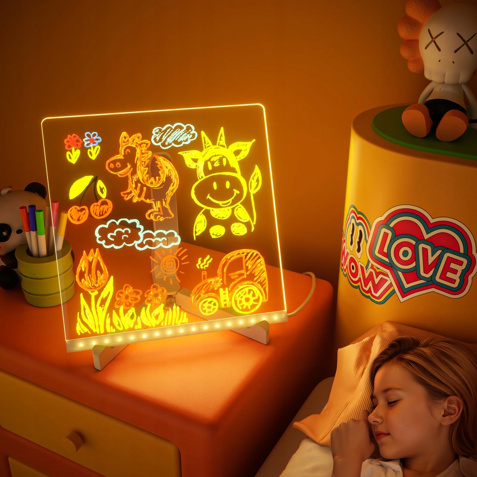 ✅В нижней части светодиодной платы расположен светодиод, излучающий мягкий свет, добавляющий ясности картине и обеспечивающий уникальные визуальные эффекты, что особенно полезно, когда дети рисуют и пишут.