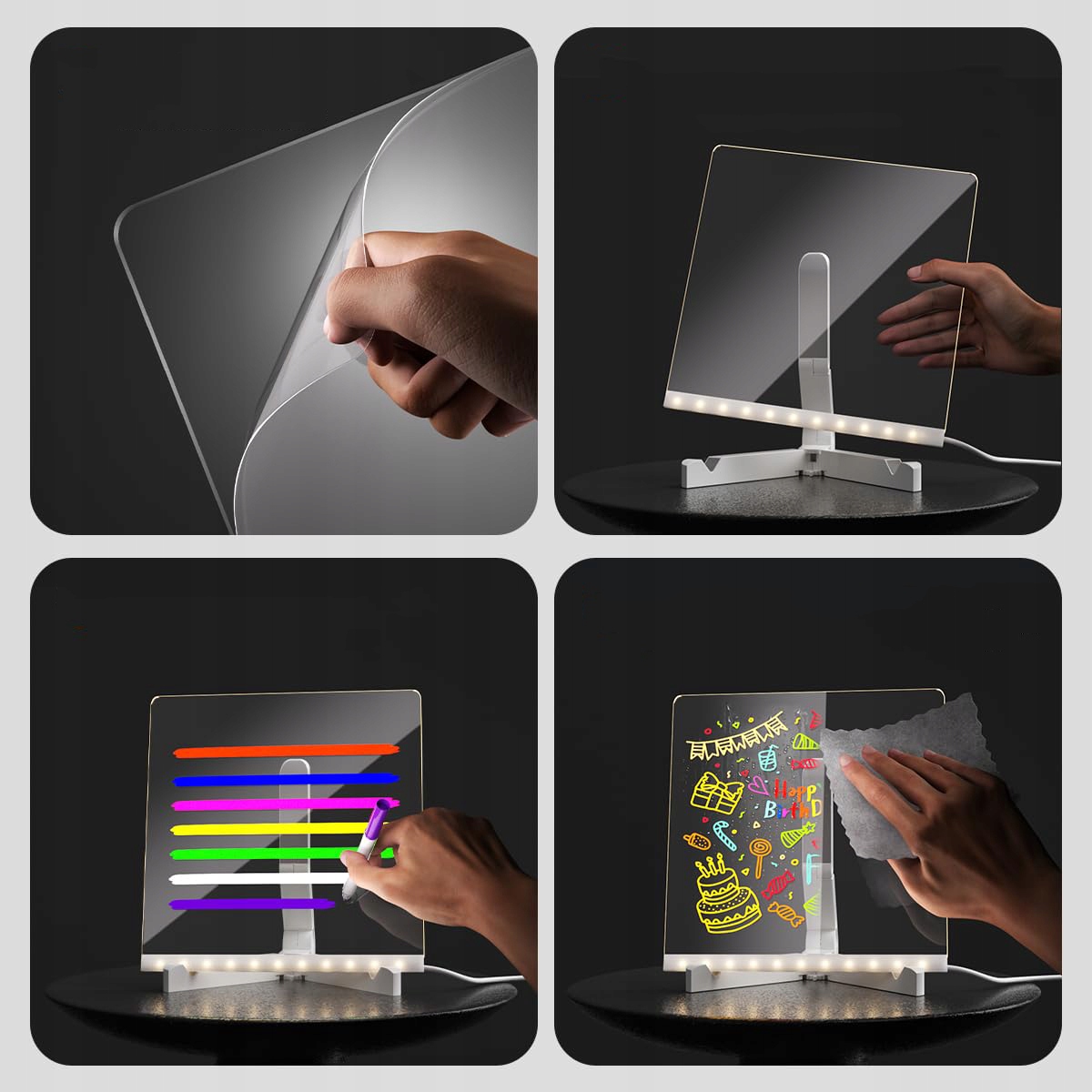 ⭐Светящаяся АКРИЛОВАЯ ДОСКА для письма со светодиодной подсветкой и подставкой с подсветкой⭐