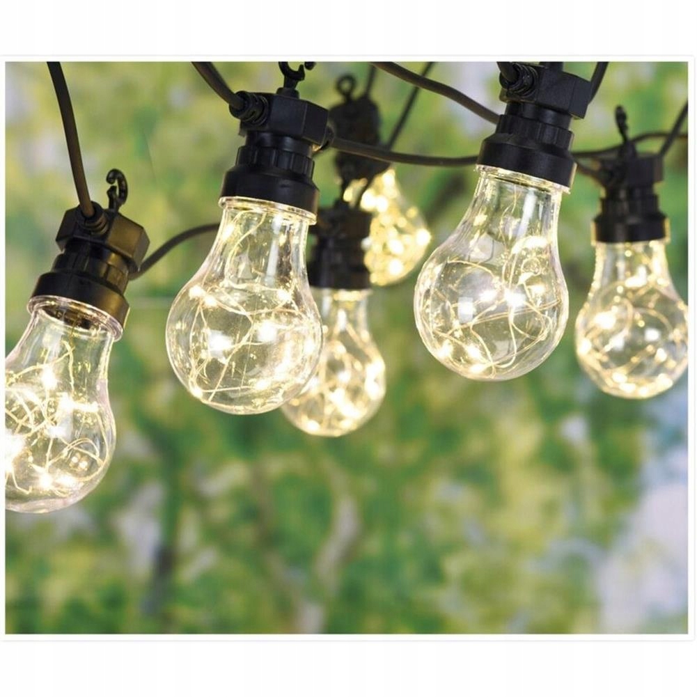 Материал: пластиковая лампочка. Размеры: 6 x 7,5 см (диаметр х высота). Расстояние между лампочками: 50 см. Общая длина: 7,5 м. Длина кабеля: 3 м. 10 лампочек A60 (3 В / 32 мА), каждая лампочка содержит 8 микросветодиодов. Общая потребляемая мощность. : Блок питания 1WIP44 (4,5 В, 1,35 Вт/600 мА) Для использования как внутри, так и вне помещений