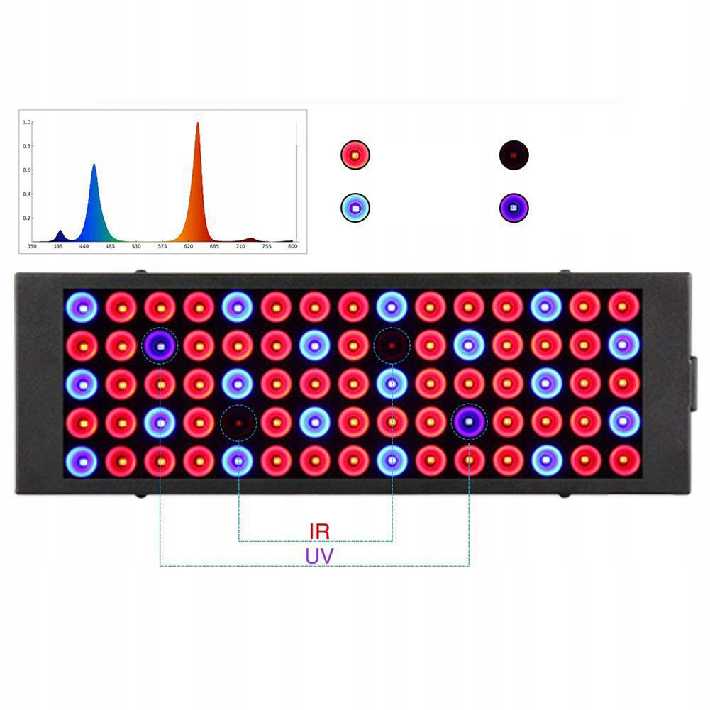 Инфракрас может помочь расти растения, мы добавили 2 Инфракрасные светодиоды, если вам действительно нужно получить полный спектр в определенных обстоятельствах. Поддерживает рост растений и убивает насекомых. Мы создали специальную конструкцию и добавили ультрафиолетовые и ИК -светодиоды в соответствии с вашими потребностями. Более похоже на солнечный свет и более подходящий для роста растений. < /P>
