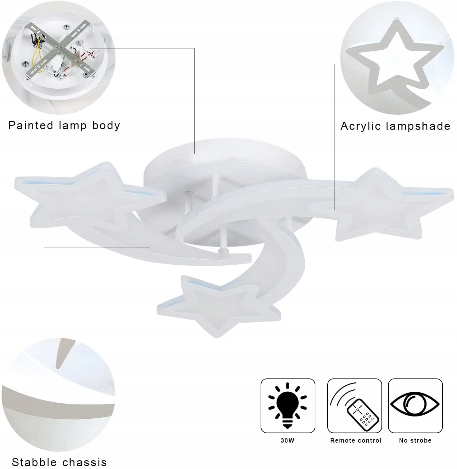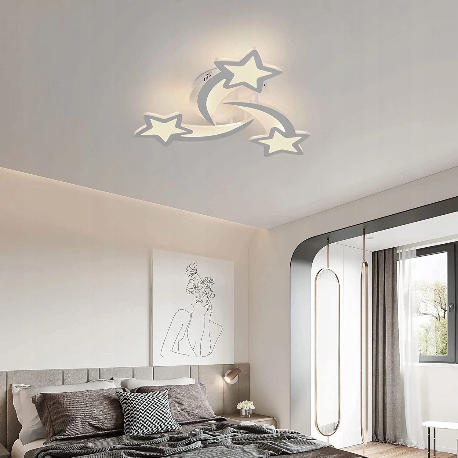 【Современная потолочная лампа】 Форма звезды, эта красивая потолочная лампа установлена на потолке, как падающая звезда, создавая теплую атмосферу. Его можно использовать не только как освещение, но и в качестве внутреннего украшения, благодаря тому, что ваш дом будет более красивым и более элегантным.