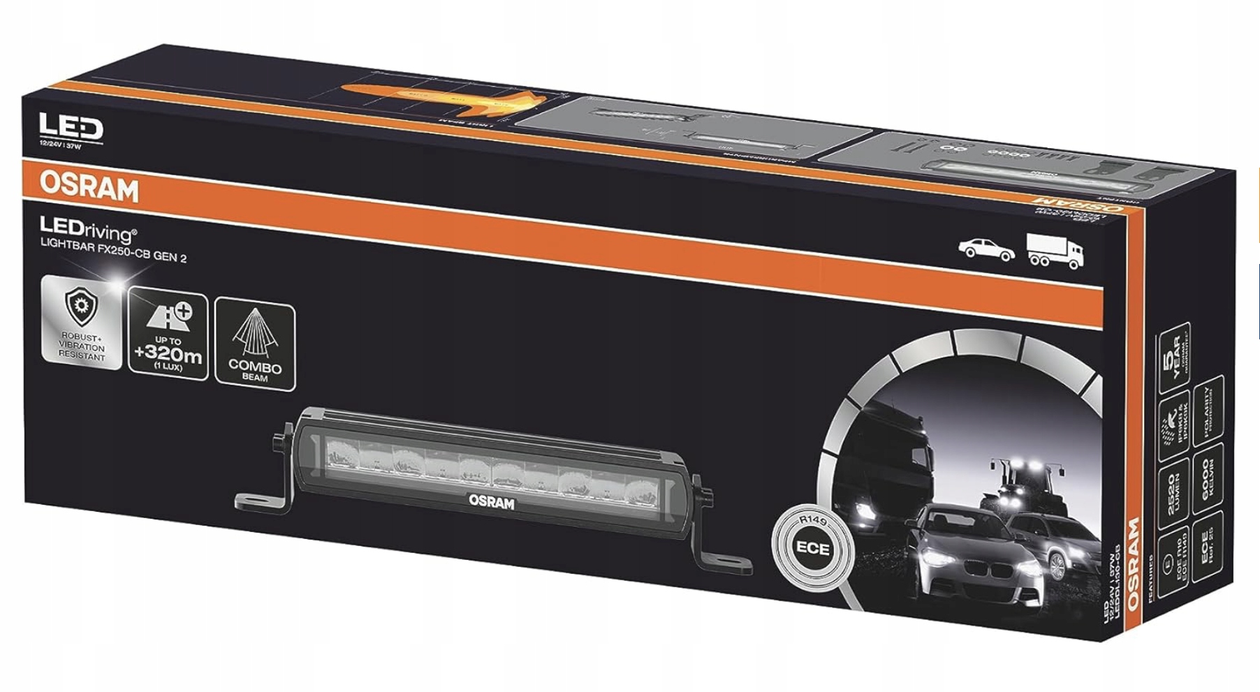 OSRAM LEDriving FX250-CB Gen 2 — отличный выбор для водителей внедорожников, внедорожников, транспортных средств доставки, автобусов и грузовиков. Изделие особенно рекомендуется для использования в полевых условиях, в кемпингах, на проселочных дорогах и везде, где требуется сильное и надежное освещение дальних и ближних полей.