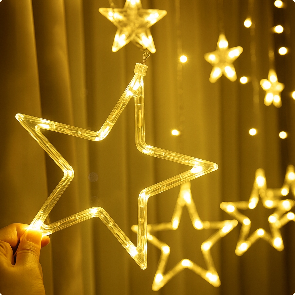 СВЕТОВАЯ ЗАВЕСА РОЖДЕСТВЕНСКАЯ ЕЛКА СВЕТИЛЬНИКИ ЗВЕЗДЫ ЛУНА LED ТЁПЛЫЙ БЕЛЫЙ ДЛЯ ОКНА