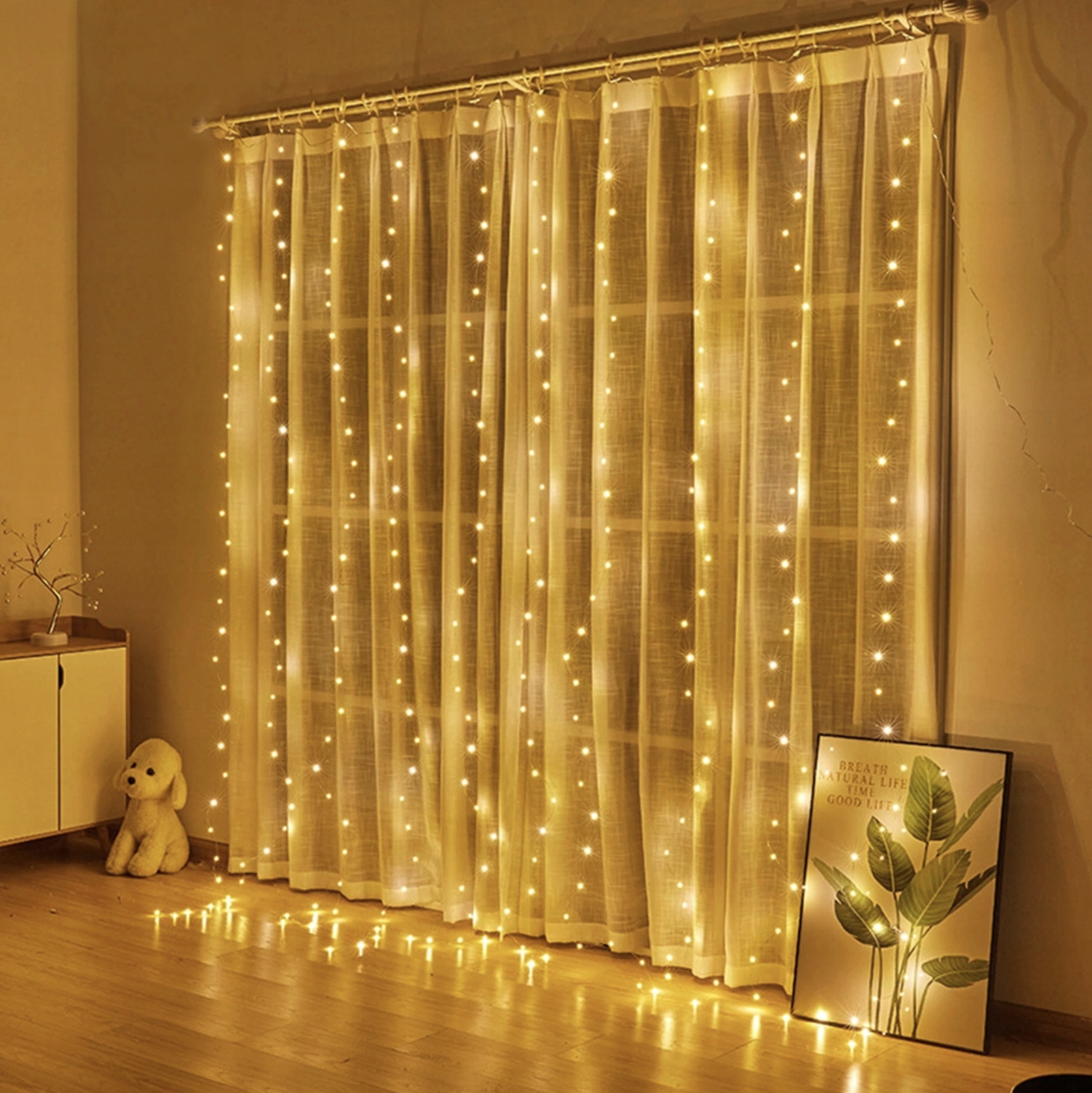 Теплые крошечные точки света напоминают свечение свечей и пламя камина. Они создают романтическую, элегантную и гармоничную атмосферу. Эта световая завеса не является обычным украшением - это украшение, которое меняет восприятие всей комнаты.