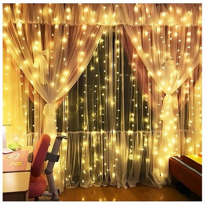 Световая завеса 300 LED WARM WHITE Гирлянда Лампы 2700K 3х3м USB-пульт дистанционного управления