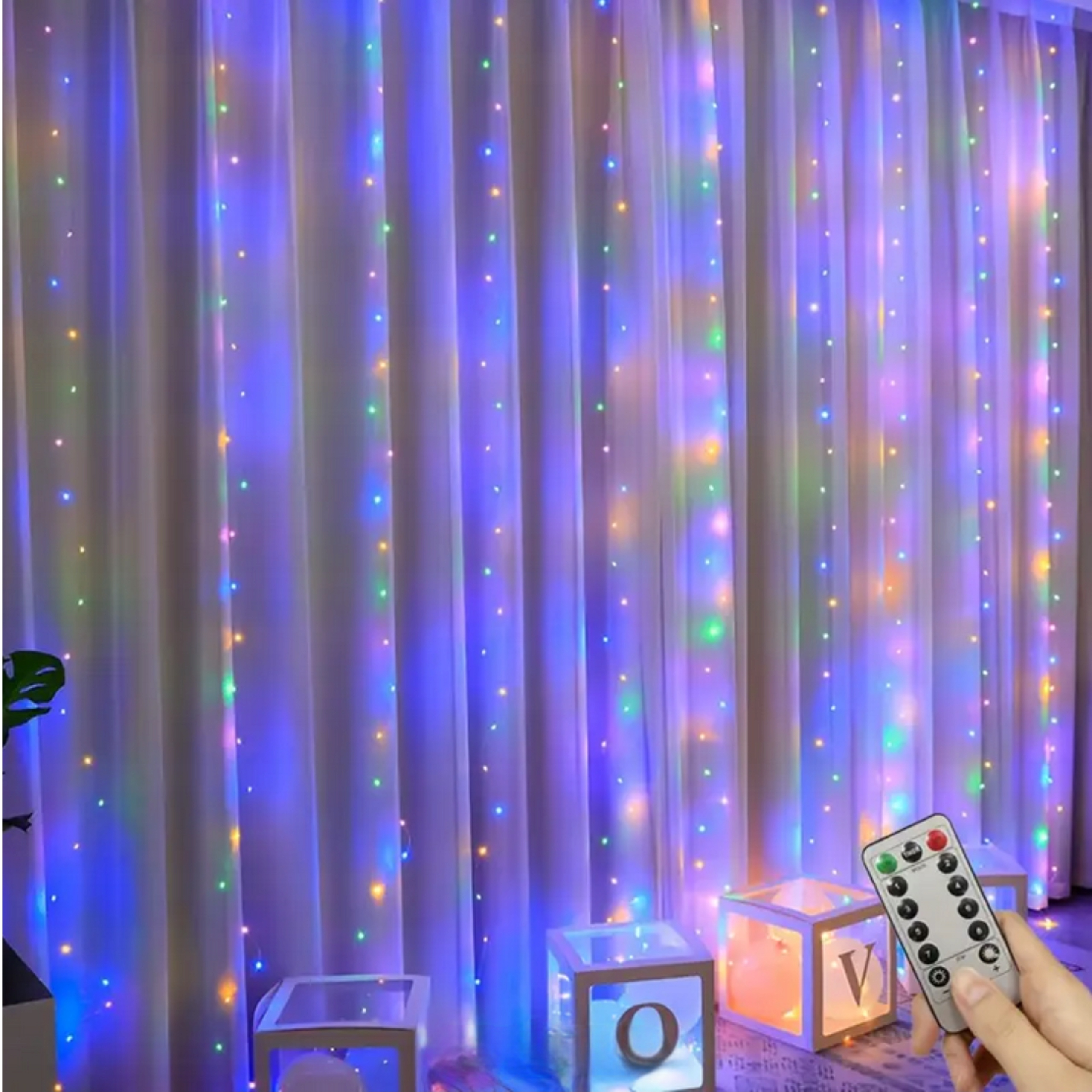 СВЕТОВАЯ ЗАВЕСА 300 ЦВЕТНЫХ СВЕТОДИОДОВ 3x3 USB ЕЛОЧНАЯ ГИРЛЯНД ДИСТАНЦИОННЫЙ
