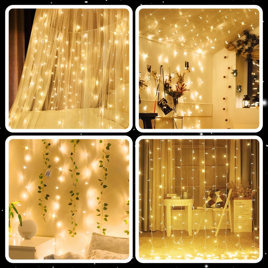 Это 300 LED легкая штора размером 3x3 м цвета теплого белого – идеальный выбор: практичная, элегантная и готовая к созданию незабываемых композиций
