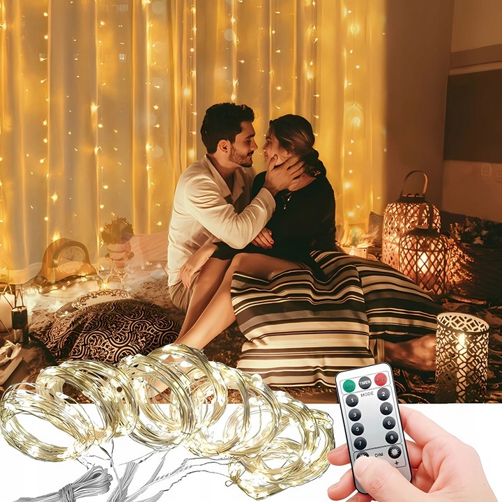 Световая завеса 300 LED ТЁПЛЫЙ БЕЛЫЙ Гирлянда Лампы 2700К 3х3м USB + пульт ДУ