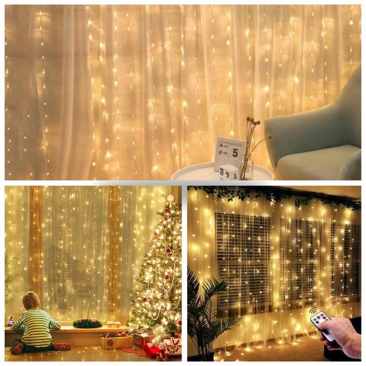 Световая завеса 300 LED ТЕПЛЫЙ БЕЛЫЙ Гирлянда Лампы 2700К 3х3м USB + пульт ДУ