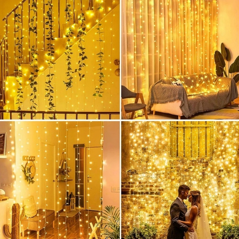 СВІТЛОВА ЗАВІСА 300LED 3X3M ЗОВНІШНЯ/ІНТЕР'ЄР ТЕПЛОГО КОЛЬОРУ З USB ГАЧКОМ
