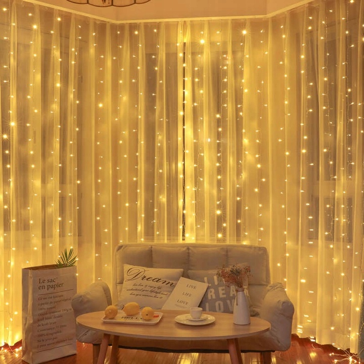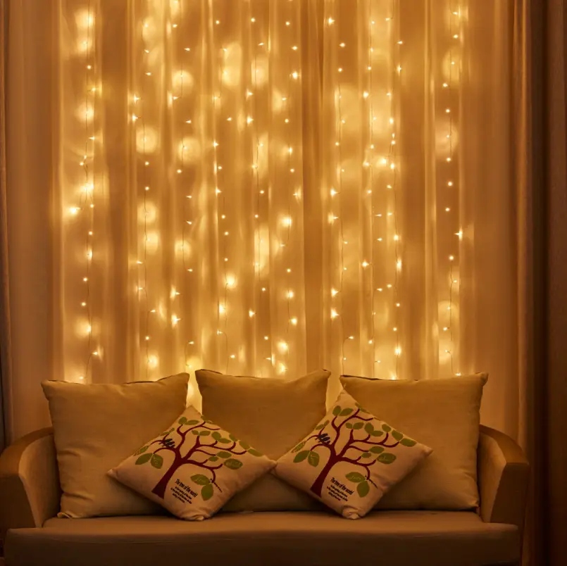 Световая завеса 3х3м светодиодная подсветка на окно Гирлянда ТЕПЛЫЙ БЕЛЫЙ розетка 230В