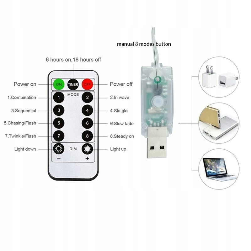 - Режим управления: 2 типа (пульт дистанционного управления/кнопка USB).