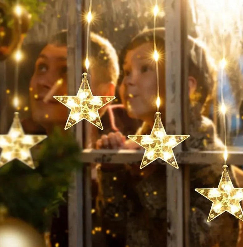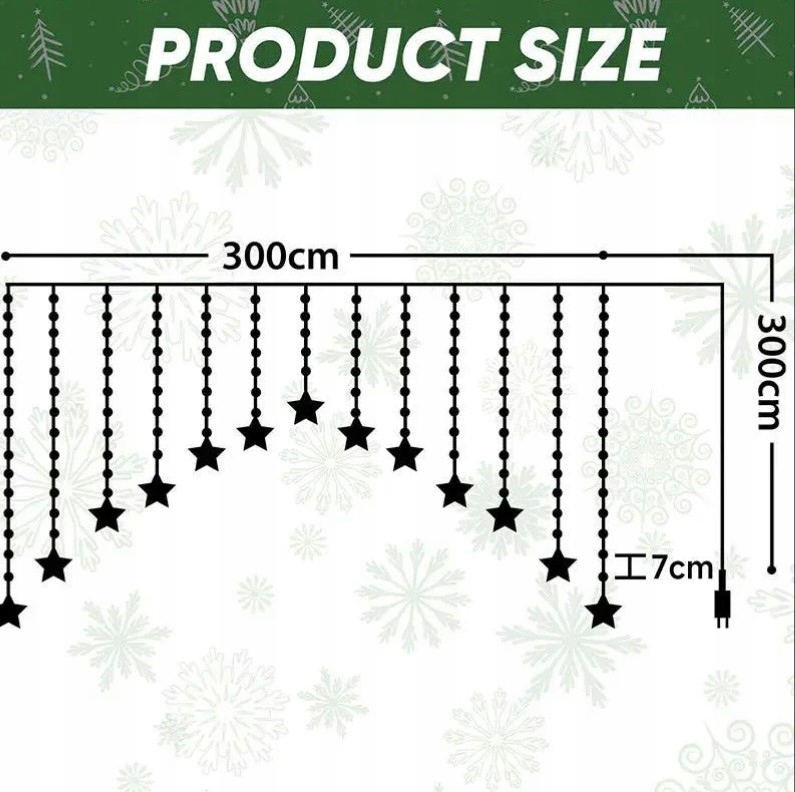 ✨ Светодиодная световая завеса Salcar® 3 м – 222 светодиода, 16 звезд, теплый белый