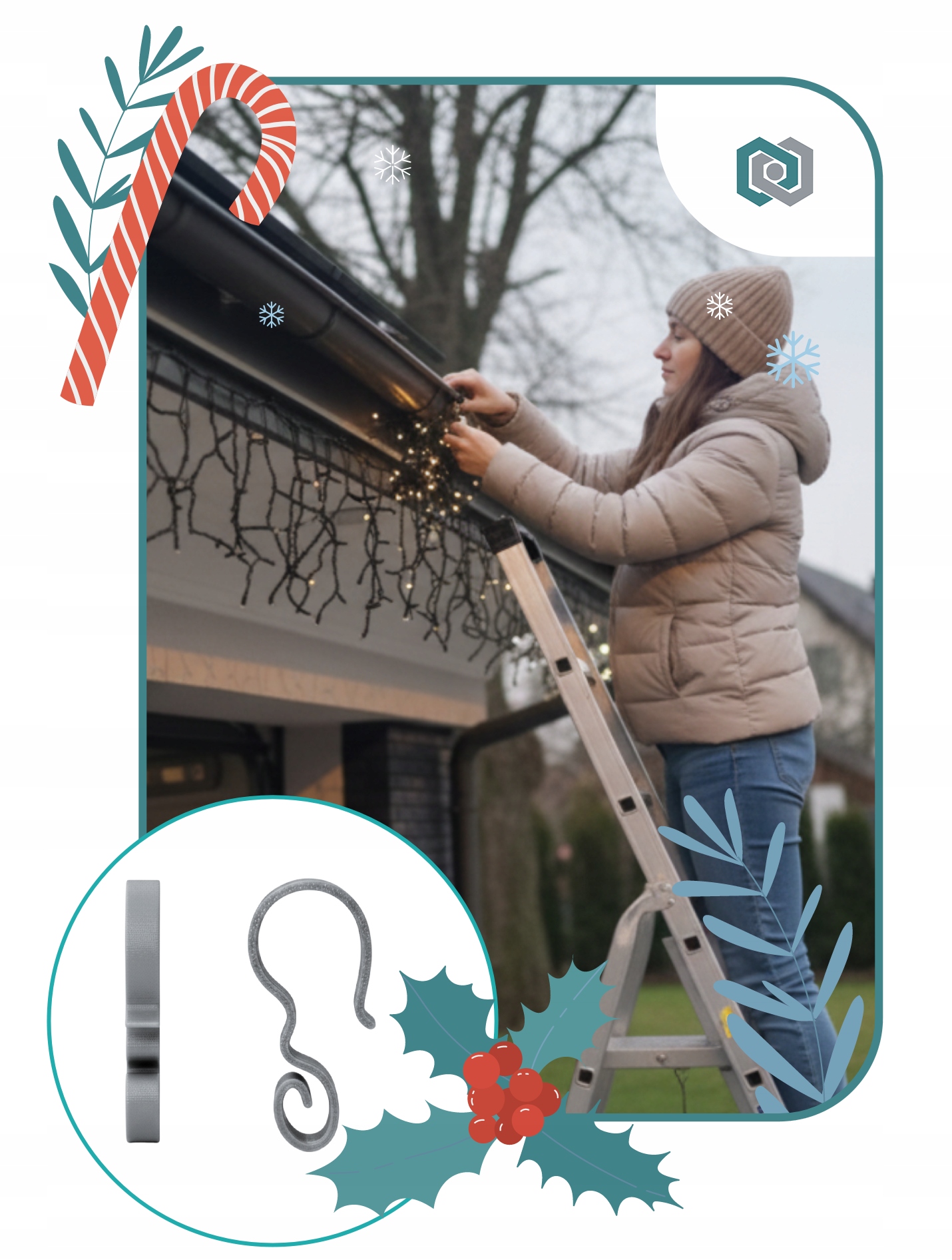 Откройте для себя наши блестящие крючки для желобов для гирляндных светильников! Теперь вы можете безопасно повесить рождественские украшения на желоба или крышу.