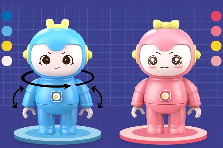 В набор входят два пробельных символа: WINK (СИНИЙ) и NINK (РОЗОВЫЙ). Эти маленькие инопланетяне могут стоять, сидеть, шевелить руками и качать головой.