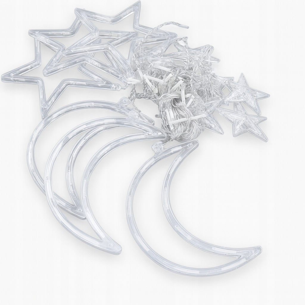Создайте волшебную, уютную атмосферу в своем доме с помощью уникальной светодиодной световой завесы в форме звезд и лун! Идеально подходит в качестве украшения окна, балкона, гостиной или спальни — идеально как во время курортного сезона, так и круглый год.