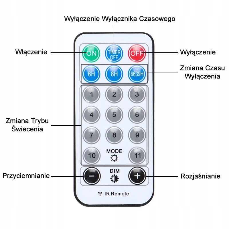С помощью пульта дистанционного управления вы можете выбирать любимые режимы освещения в радиусе 10 метров и отрегулируйте яркость под свои нужды (10 уровней яркости). Свет включается на 6 часов и автоматически выключается на 18 часов при нажатии кнопки «ТАЙМЕР».