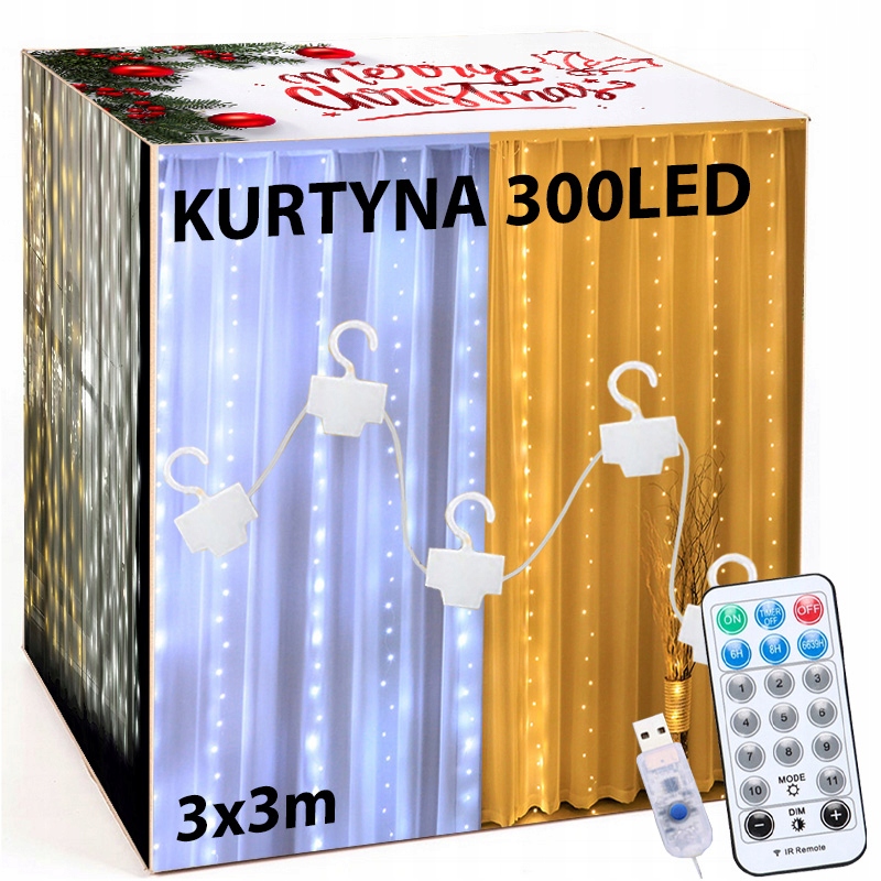 СВЕТОВАЯ ЗАНАВЕСА 300LED УДАЛЕННАЯ ЛАМПА-ГАРЛАНД 3x3м