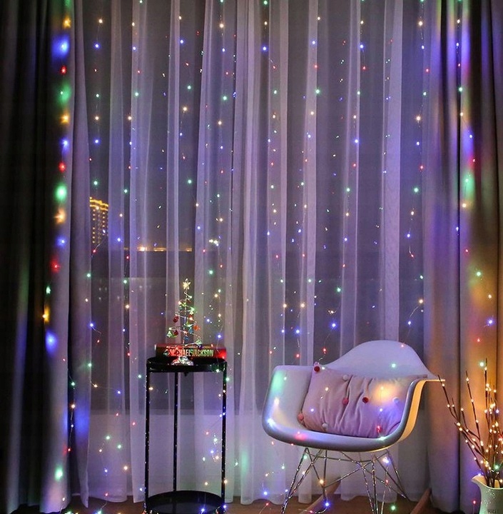 Светодиодная завеса состоит из 300 лампочек, что дает удивительный и неповторимый эффект висящих сосулек. Каждое место, куда мы повесим светильники, станет очаровательным. Такое освещение создает праздничное настроение и заставляет волшебство Рождества сопровождать нас весь день.