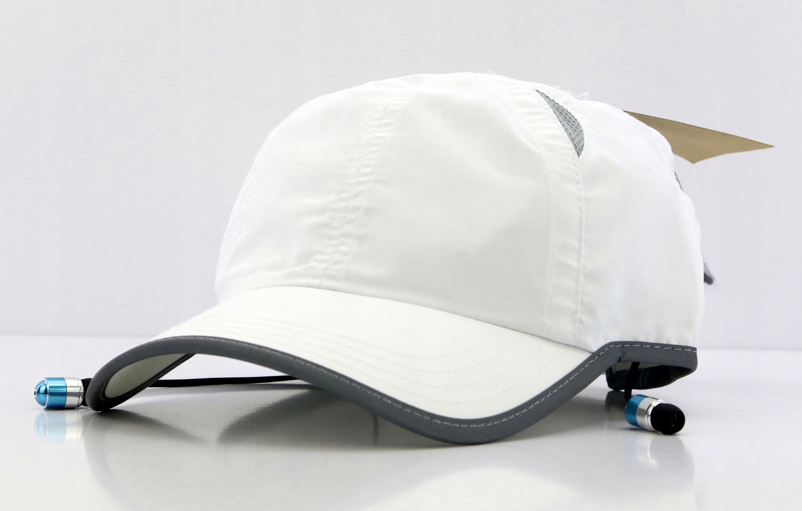 Окантовка кепки выполнена из светоотражающего материала. Вся электроника спрятана внутри кепки за слоем материала, поэтому она незаметна и не мешает использованию.