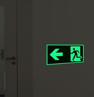 Для обозначения запасных путей и выходов | Пиктограммы + стрелки направления | Светится в темноте.
