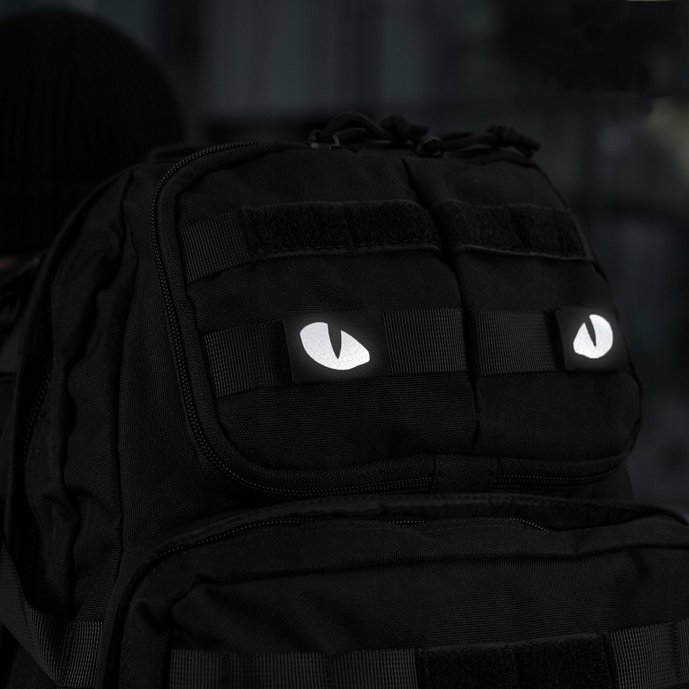 Нашивка для глаз M-Tac Tiger предназначена для крепления к ремням MOLLE вместо обычной липучки. Изображение выполнено из светящегося в темноте флуоресцентного материала.