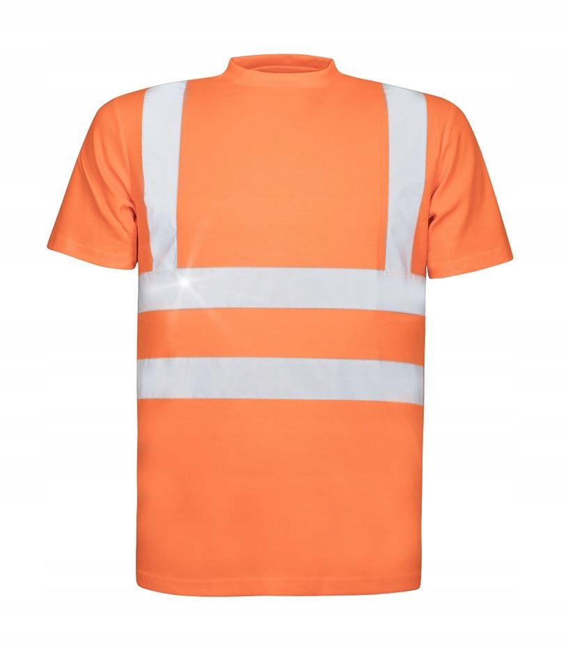 Оранжевая рабочая футболка со светоотражающими полосами: 2 горизонтальные, 2 вертикальные