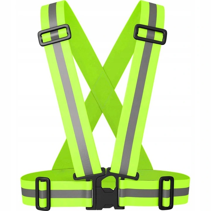 Светоотражающий жилет шлейного типа, надеваемый на грудь, прекрасно улучшает видимость на дороге даже в несколько раз (особенно после наступления сумерек), а значит и вашей безопасности.