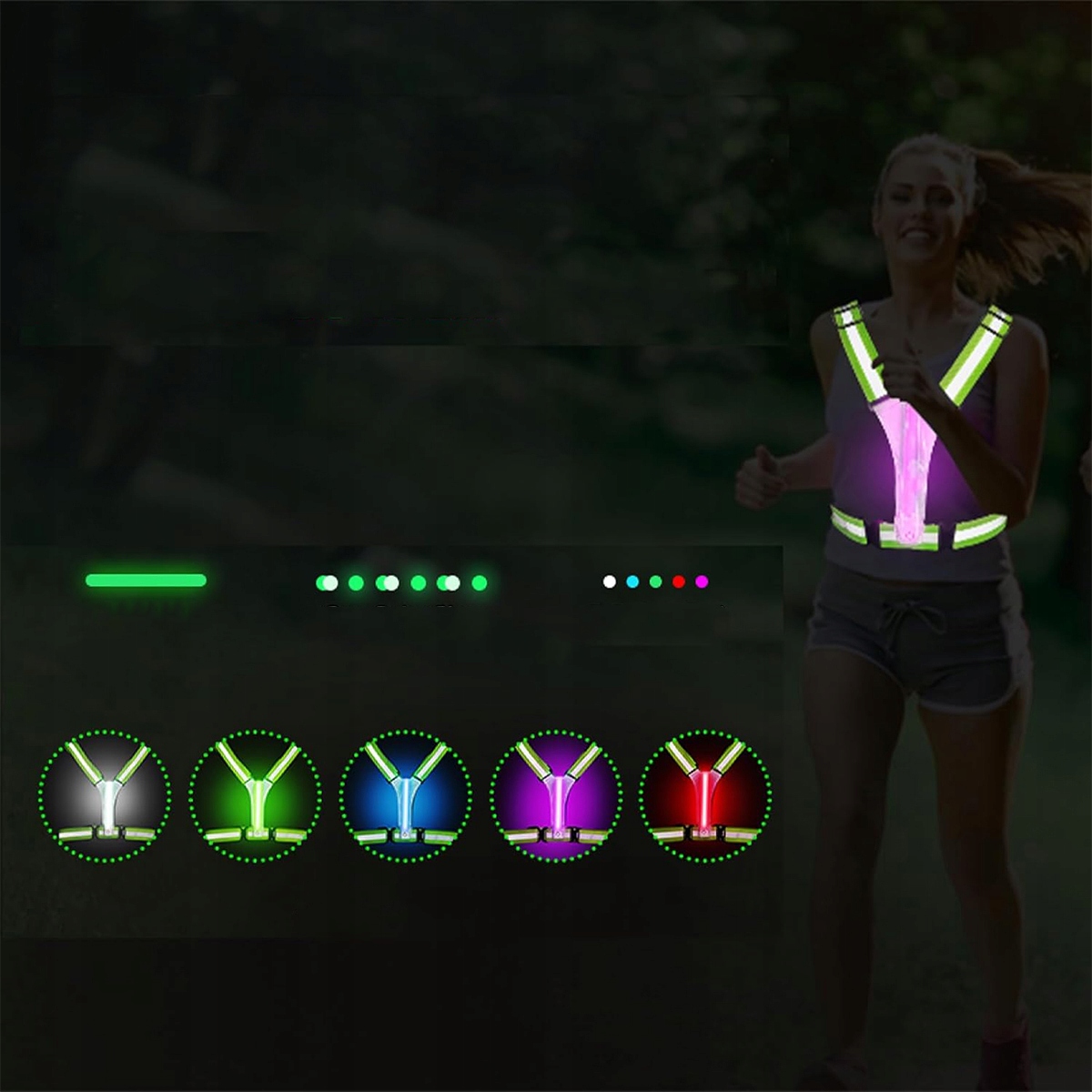 ✔ Очень яркая и высокая видимость: отражающий светодиодный жилет. Более 300 метров. Отражающий жилет обеспечивает видимость и безопасность в условиях низкого освещения, увеличивая безопасность свежего воздуха. Белый, зеленый, синий, синий, розовый и красный. Вы также можете выбрать один из 3 динамических режимов света - непрерывный свет, мигающий свет и режим цикла RGB, чтобы удовлетворить вашу индивидуальную безопасность и стиль