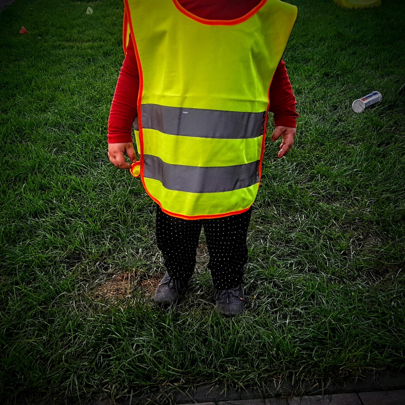 Светоотражающий жилет для детей и подростков из высококачественного флуоресцентного материала с двумя дополнительными горизонтальными светоотражающими полосами - на передней и задней части туловища.