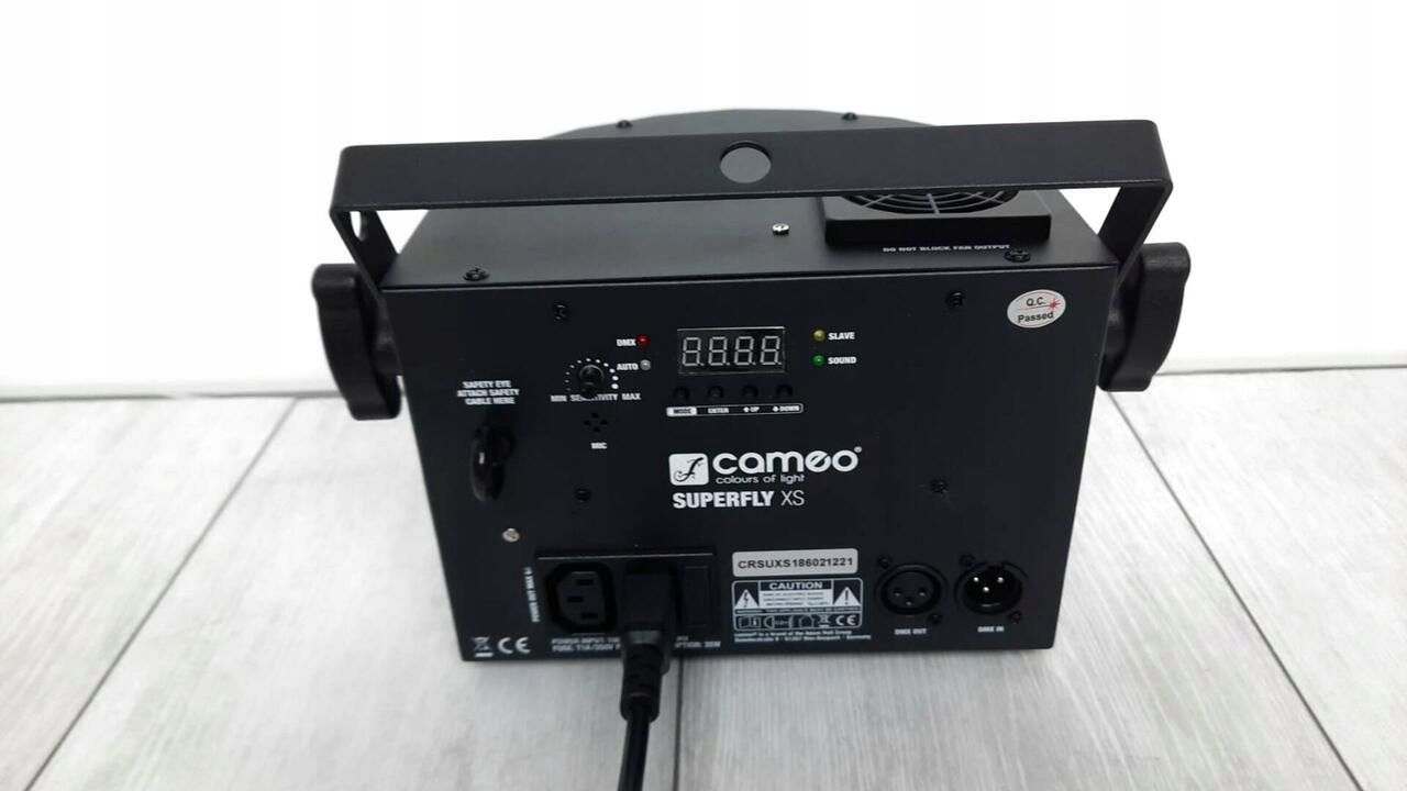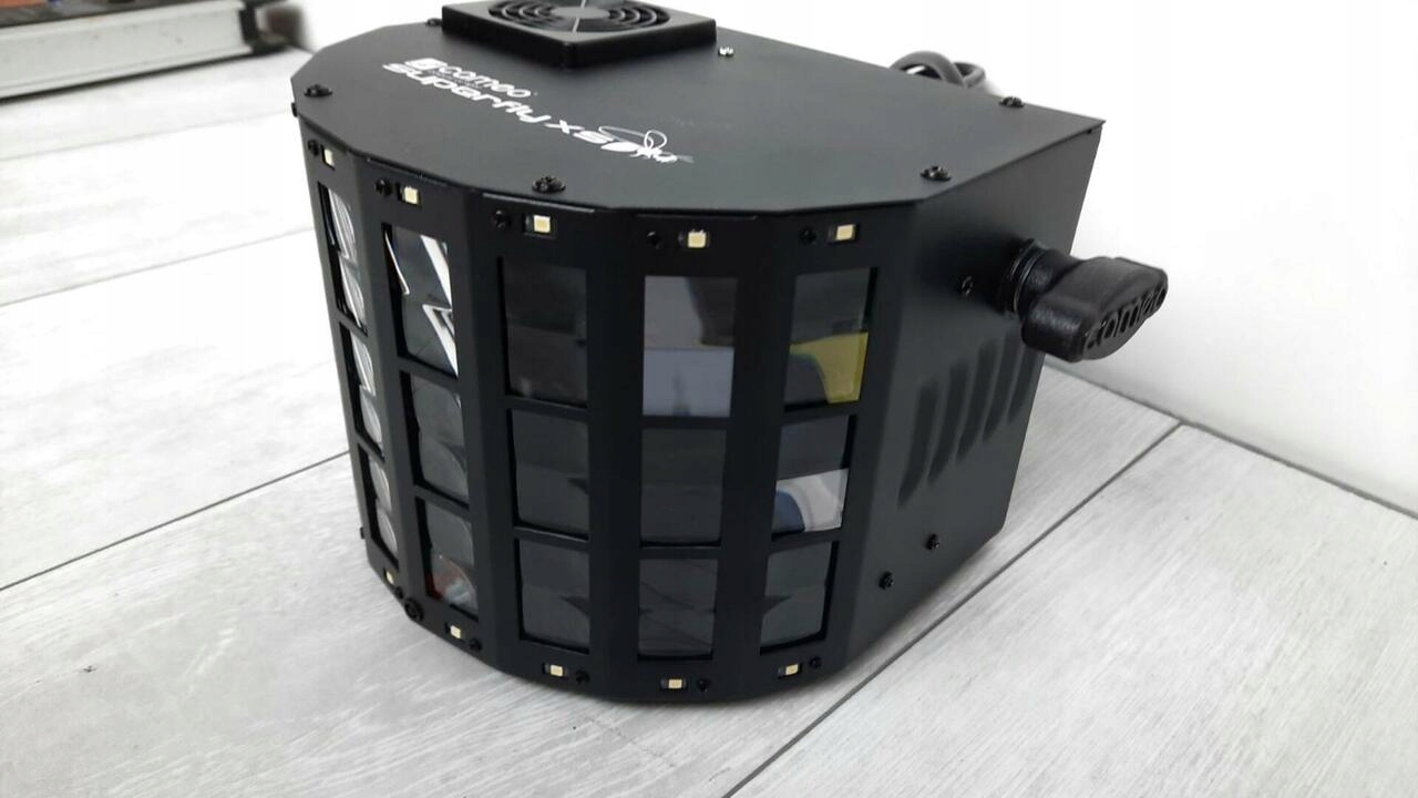 Благодаря четырем светодиодам RGBW мощностью 3 Вт и 48 прецизионным линзам SUPERFLY XS создает отчетливый эффект дерби с широким и резким лучом света, прорезающим насыщенные и очень яркие цвета. Имеет встроенный стробоскоп с 16 белыми светодиодами мощностью 0,5 Вт. Оба эффекта можно использовать индивидуально. SUPERFLY XS предлагает 1-канальный и 5-канальный режим DMX, звуковую активацию, автоматизированные программы, а также основные, подчиненные и автономные функции. Управление интуитивно понятно с помощью 4-кнопочной панели со светодиодным дисплеем. Дополнительно в комплект входит инфракрасный пульт дистанционного управления.