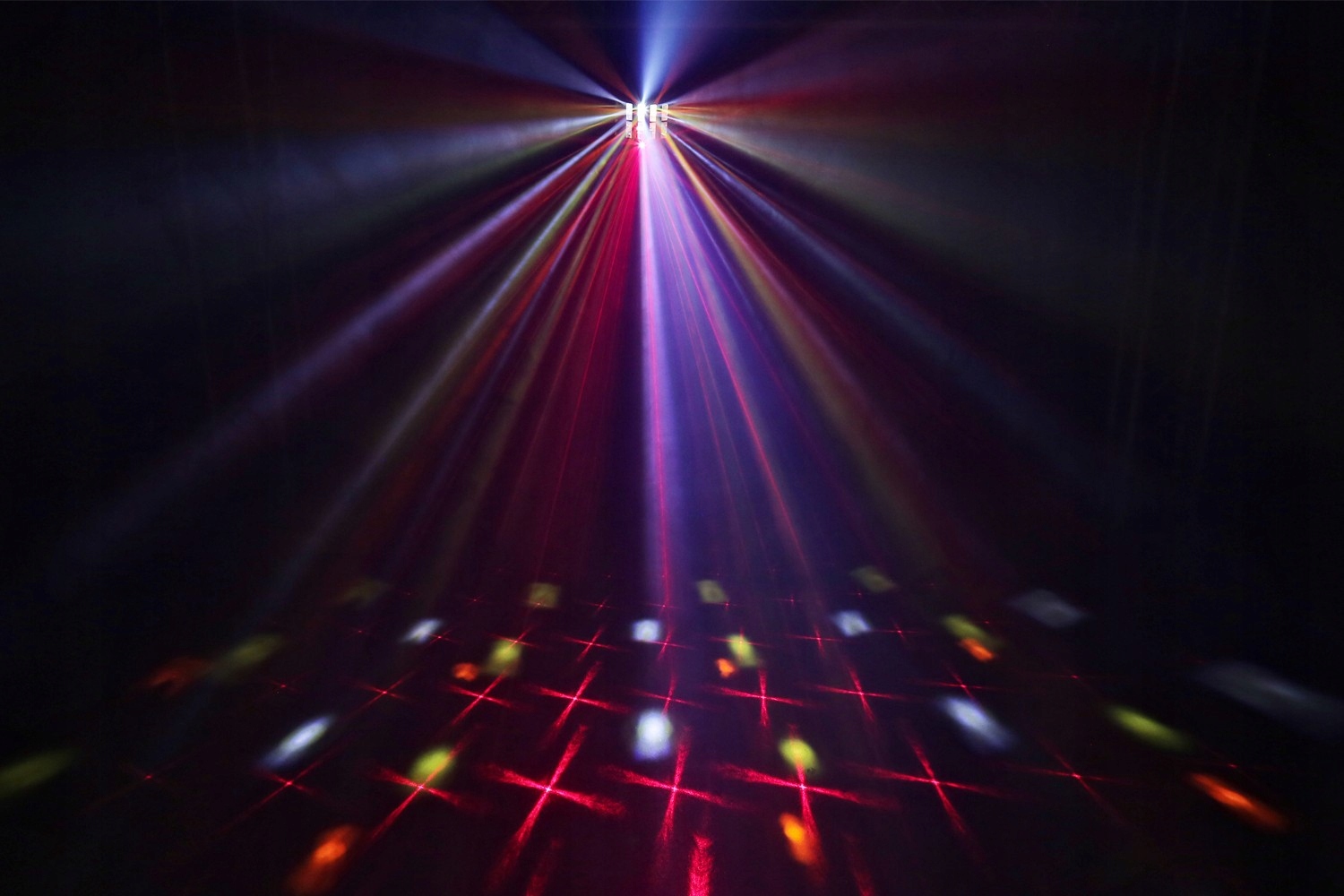 Потрясающий красочный световой эффект от BeamZ. Это незаметное устройство содержит целых 3 световых эффекта. Лампа излучает несколько десятков лучей света очень насыщенного и яркого цвета благодаря использованию светодиодной технологии. В нашем распоряжении также есть стробоскоп и красно-зеленый лазер. Оснащенный 9 светодиодами мощностью 3 Вт каждый, он обеспечивает потрясающие шоу на сцене и танцполах. Устройство может работать в ритме музыки благодаря встроенному микрофону, автоматическому режиму Master/Slave или по DMX. Оборудование идеально подходит для клубов, дискотек и мобильных диджеев.