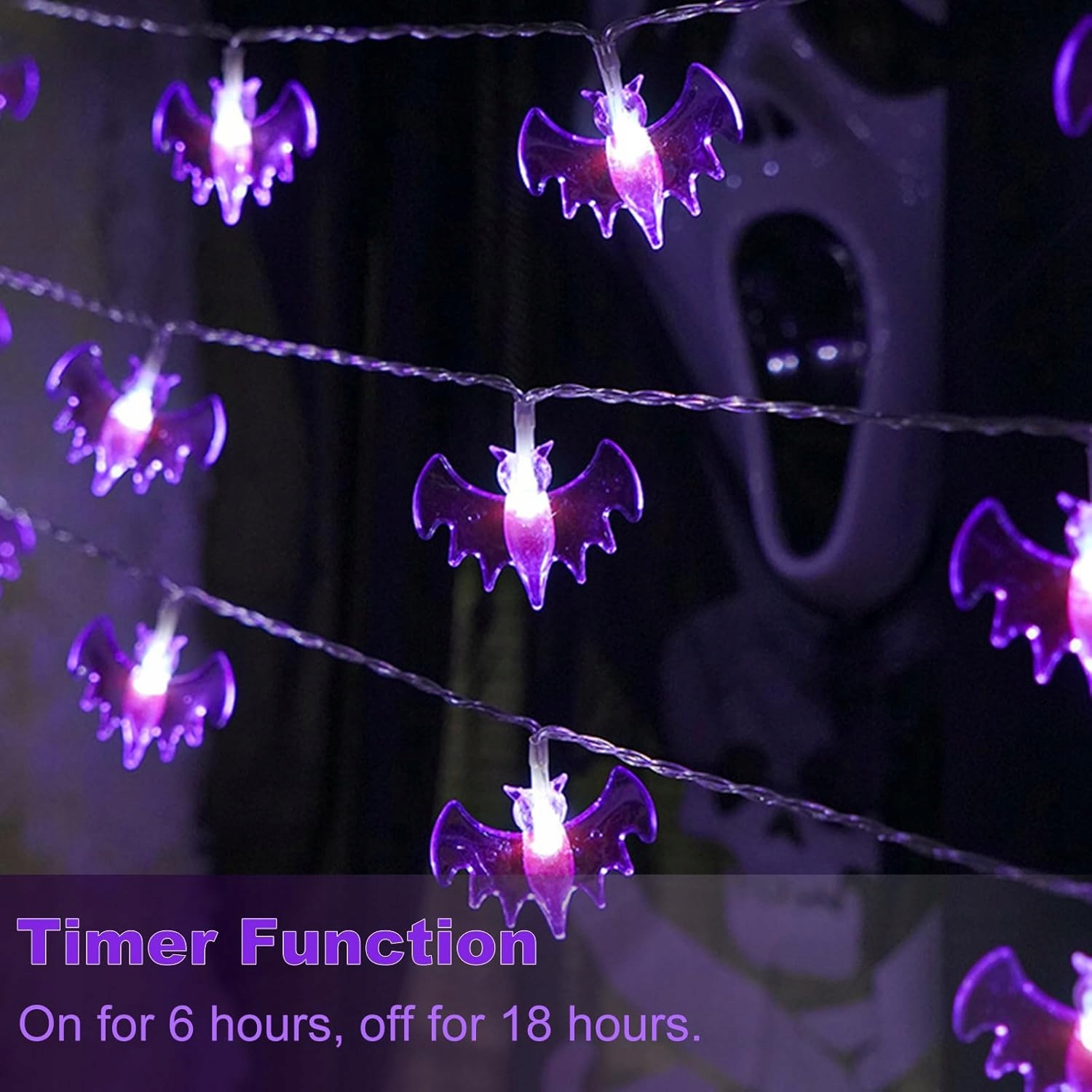 Цепочка огней с фиолетовыми летучими мышами создает загадочную и неповторимую атмосферу Хэллоуина. Идеально подходит в качестве украшения балюстрад, дверей, столешниц, стен, каминов и окон. Это прекрасное дополнение к осенним композициям и рождественским украшениям.