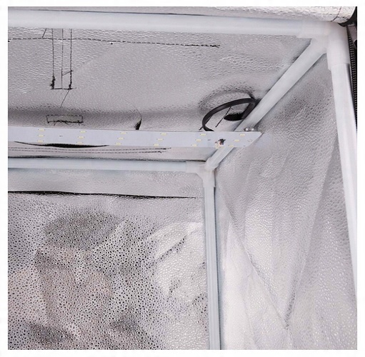 Светодиодные ленты устанавливаются внутри палатки, питаются от блока питания с возможность регулировки мощности света.