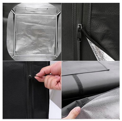 Внутренняя часть палатки покрыта серебристым материалом (структура софтбокса), который рассеивает свет, благодаря чему фотографируемый объект будет освещен равномерно и не будет отбрасывать тени.